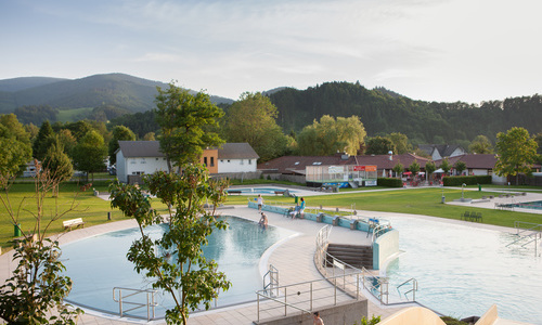 Das benachbarte Freibad ist wie vor der Pandemie für unsere Gäste uneingeschränkt nutzbar und im Übernachtungspreis inklusive. Allerdings gibt es Verzögerungen bei den Umbau- und Sanierungsarbeiten.