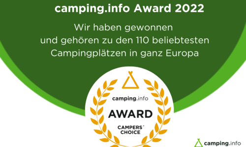 Wir sind unter den Top 30 in Europa und den Top 20 in Deutschland und freuen uns über einen genialen 28. Platz bei den Camping.info Awards 2024. Ein großes Dankeschön an unsere tollen Gäste!